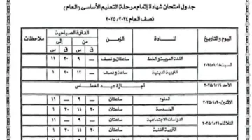 • جدول إمتحانات الصف الثالث الإعدادي الترم الأول 2025 كل المحافظات في الفصل الدراسي الاول