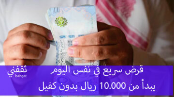 بإيداع فوري قرض سريع في نفس اليوم.. يبدأ من 10.000 ريال بدون ضامن