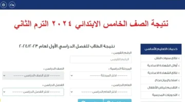 نتيجة الصف الخامس الابتدائي 2024 بالاسم والجلوس والرقم القومي كل المحافظات