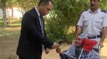 قاضٍ يساعد سيدة مسنة على الإدلاء بصوتها داخل لجنة كيما بأسوان