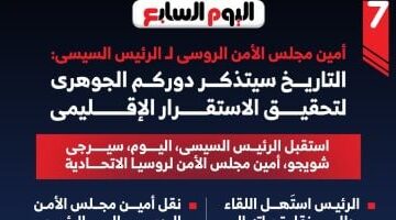 أمين مجلس الأمن الروسى للرئيس السيسى: التاريخ سيتذكر دوركم الجوهرى لتحقيق الاستقرار الإقليمى.. إنفوجراف
