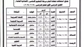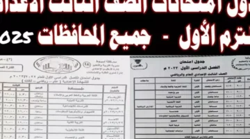 جدول امتحانات الصف الثالث الاعدادي للفصل الدراسي الأول 2025 في كافة المحافظات