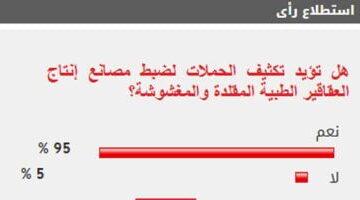 %95 من القراء يؤيدون تكثيف الحملات لضبط مصانع إنتاج العقاقير الطبية المغشوشة