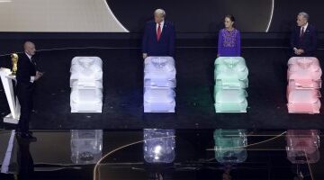 ترامب ورئيسة المكسيك ورئيس وزراء كندا يشاركون فى سحب قرعة كأس العالم 2026