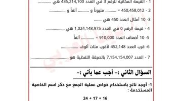 • اختبارات نموذجية في الرياضيات رابعة ابتدائي