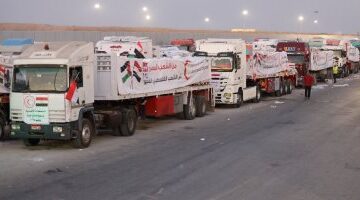 • قافلة المساعدات الإنسانية الـ46 تتوجه إلى غزة