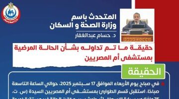 • وزارة الصحة توضح حقيقة تعرض مواطن للإهمال الطبى بمستشفى أم المصريين
