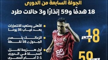 • ملخص الجولة السابعة للدوري.. 18 هدفاً و59 إنذاراً و3 حالات طرد