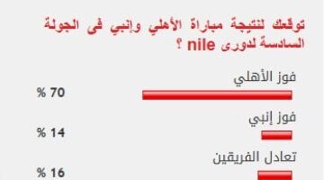 • %70 من القراء يتوقعون فوز الأهلي أمام إنبي فى الجولة السادسة لدورى nile