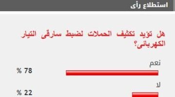 • 78% من القراء يؤيدون تكثيف الحملات لضبط سارقى التيار الكهربائى