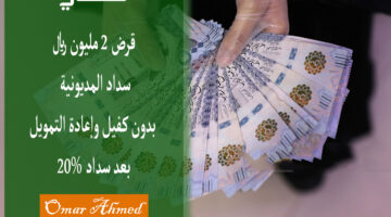 قرض 2 مليون ريال سداد المديونية بدون كفيل وإعادة التمويل بعد سداد 20%
